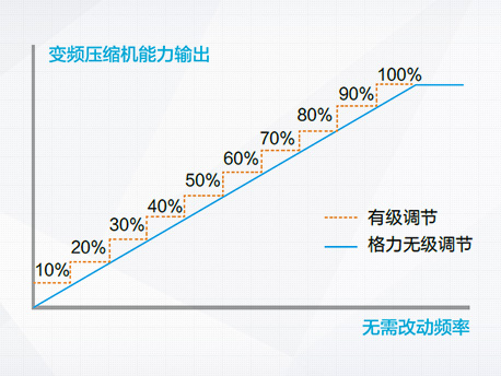 輸出能力無(wú)級(jí)調(diào)節(jié),直流變頻壓縮機(jī)能夠在20Hz~120Hz范圍內(nèi)做到數(shù)字化無(wú)級(jí)能量調(diào)節(jié)。