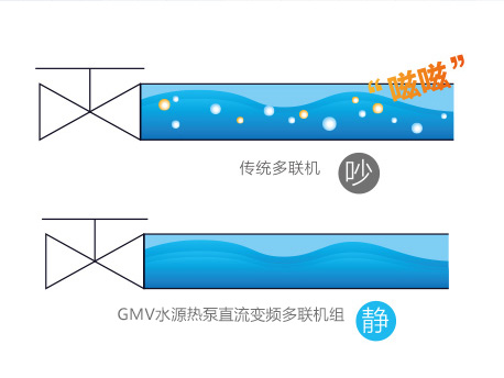 傳統(tǒng)機(jī)組在冷媒流量調(diào)節(jié)時(shí)會(huì)發(fā)出類(lèi)似“茲茲”的液流噪音,GMV水源熱泵直流變頻多聯(lián)機(jī)組采用專(zhuān)業(yè)的過(guò)冷度控制技術(shù),確保冷媒以純液態(tài)形式進(jìn)入節(jié)流,有效解決內(nèi)機(jī)液流聲問(wèn)題,噪音更低。