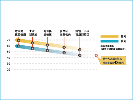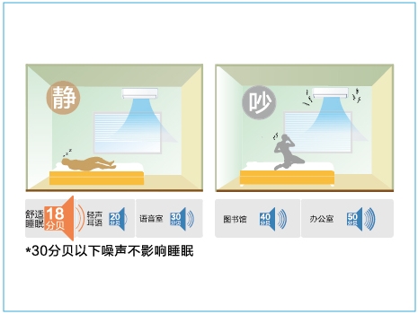 靜音模式下室外機(jī)噪音值僅為45分貝。 |