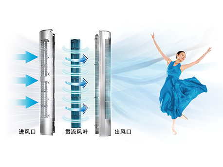 創(chuàng)新運用直立式貫流風葉,讓送風更均勻、更順暢、得柔和。 |