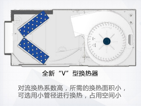 采用“V”型換熱器,開機初期,根據(jù)室內(nèi)溫度與設定溫度自動調(diào)節(jié)至高頻狀態(tài),縮短制冷或制熱時間,提升舒適度。 |